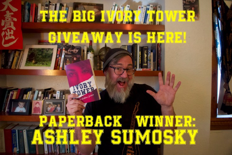 I conducted the first giveaway of a hard and e-copy of my novel Ivory Tower, which was just released last Saturday, Feb 2, 2020. Here’s the video evidence of the drawing uploaded for posterity! Congrats to the winners and thanks to all who entered!